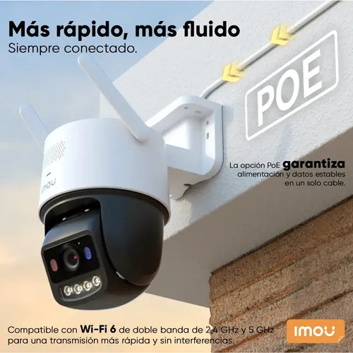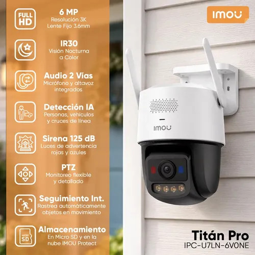 La Imou Titan Pro IPC-U7LN-6V0NE es una cámara de seguridad avanzada con resolución de 6MP, diseñada para ofrecer imágenes de alta definición y mayor nivel de detalle en la vigilancia de hogares y negocios. Su tecnología Aurora permite capturar video a color incluso en condiciones de muy baja iluminación, mientras que su conectividad WiFi doble banda 2.4 y 5 GHz proporciona una conexión más estable y rápida para el monitoreo remoto.