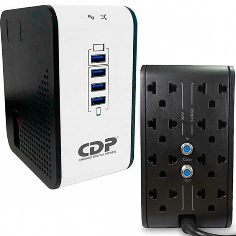 Protege y optimiza la conexión de tus equipos con este regulador automático de voltaje CDP, diseñado con múltiples opciones de salida, incluyendo puertos USB y protección coaxial. Ideal para quienes buscan una solución completa para estabilizar la energía y proteger tanto equipos electrónicos como líneas de señal.