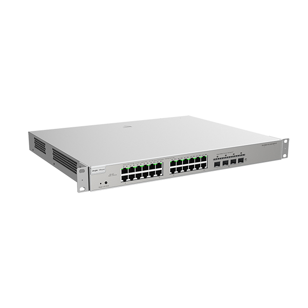 El RG-NBS5200-24GT4XS es un switch de Capa 3 (L3) de alto desempeño, diseñado para actuar como el nodo central en redes empresariales que requieren estabilidad, velocidad y una gestión de tráfico superior. Equipado con 24 puertos Gigabit Ethernet y 4 puertos SFP+ de 10 Gbps, este equipo elimina los cuellos de botella en la comunicación con servidores y otros switches. Su capacidad para funcionar como Servidor DHCP y gestionar enrutamiento estático permite una segmentación de red profesional, mejorando la seguridad y la eficiencia operativa sin depender de un router externo para las tareas internas de la red.